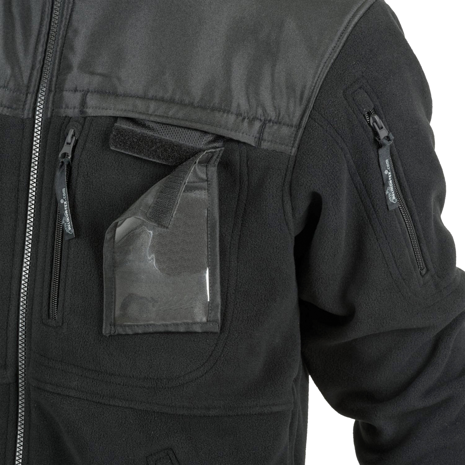 Helikon Defender heavyweight 330 fleece duty jacket with ID Velcro panels, DeepL access system, abrasion resistant shoulder and elbow reinforcements.