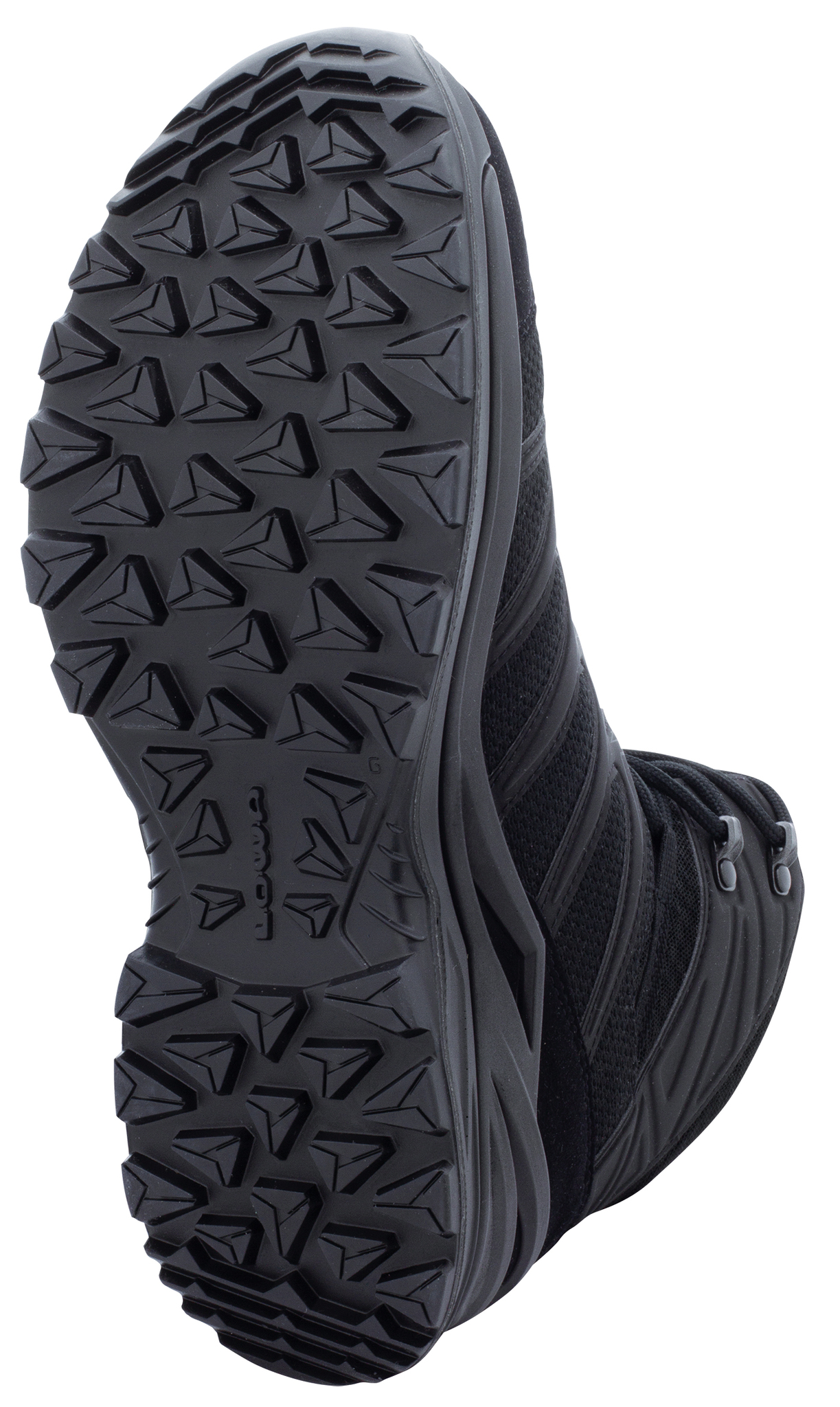The Lowa Innox Pro GTX Mid TF from the Task Force series, is a lightweight and dynamic and multifunctional operational boot, which is particularly recommended for dry and rather warm places. He convinces with an optimal cushioning and a very good rolling behavior. Responsible for this are the different PU hardnesses in the midsole. This is extremely durable and achieves an optimized ground contact thanks to its construction. The triangular tread design of the LOWA Multi Trac sole offers optimal slip resistance and traction on different surfaces in moderate terrain. The abrasion-resistant and flexible rubber outsole also ensures a comfortable rolling motion.