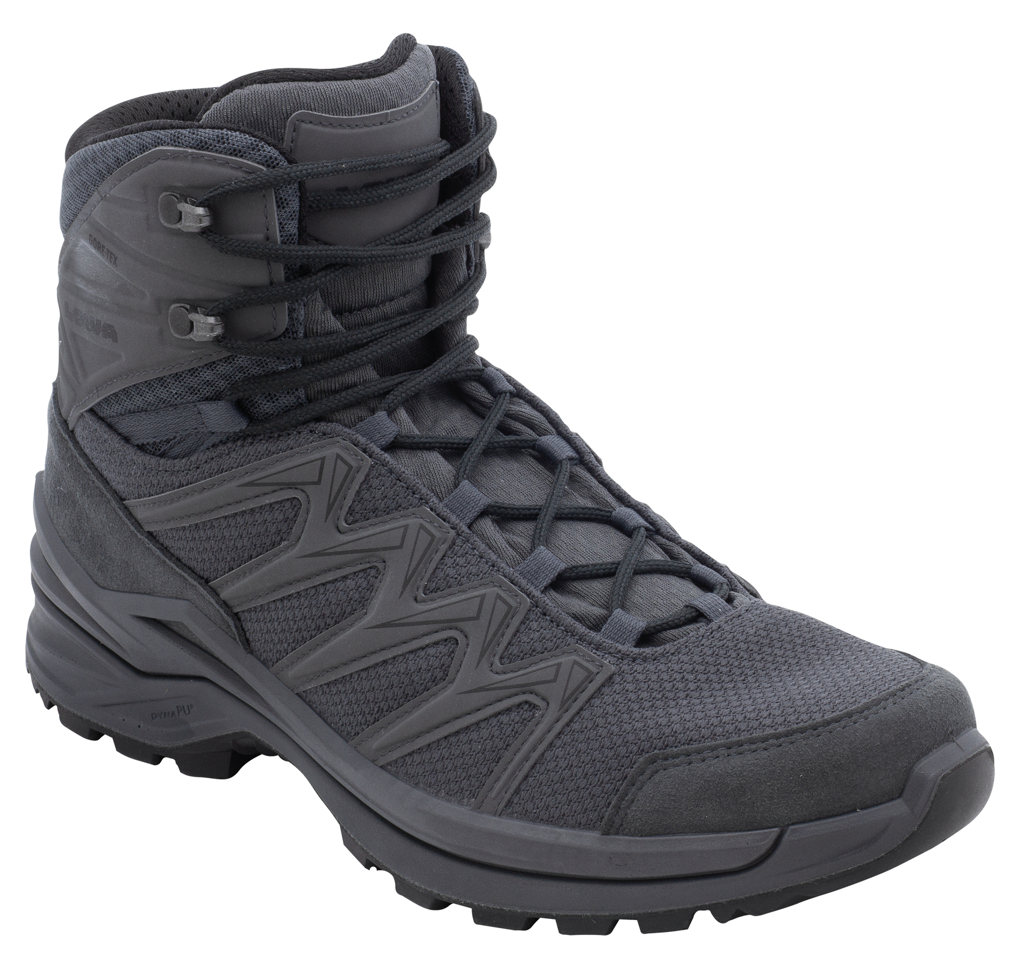 The Lowa Innox Pro GTX Mid TF from the Task Force series, is a lightweight and dynamic and multifunctional operational boot, which is particularly recommended for dry and rather warm places. He convinces with an optimal cushioning and a very good rolling behavior. Responsible for this are the different PU hardnesses in the midsole. This is extremely durable and achieves an optimized ground contact thanks to its construction. The triangular tread design of the LOWA Multi Trac sole offers optimal slip resistance and traction on different surfaces in moderate terrain. The abrasion-resistant and flexible rubber outsole also ensures a comfortable rolling motion.