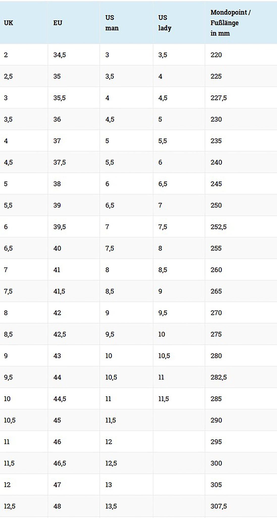 Size key UK/ DE: 7/41 8/42 8,5/42,5 9/43 9,5/44 10/44,5 10,5/45 11/46 12/47.