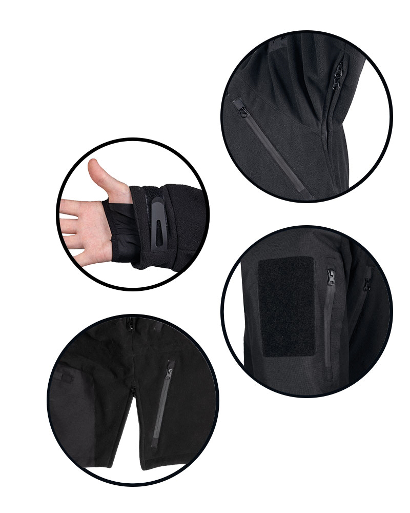 The Mil-Tec Cold Protection Jacket Fleece made of Bonded Fleece is breathable as well as waterproof* and windproof. Bonded Fleece means that two layers of fleece are bonded together. Additional TPU membrane between the layers makes the jacket breathable as well as waterproof* and windproof. Comfortable cut and a variety of practical pockets make this jacket a multifunctional mission jacket. Shoulders and back pocket are reinforced with abrasion-resistant material for added durability. Side zippers provide more freedom of movement and quick access to firearms.