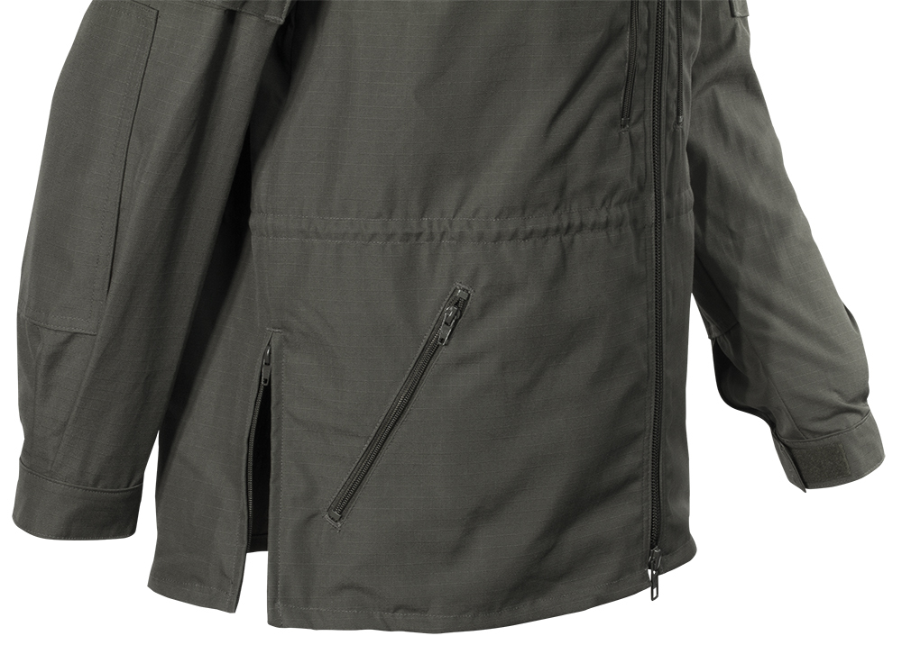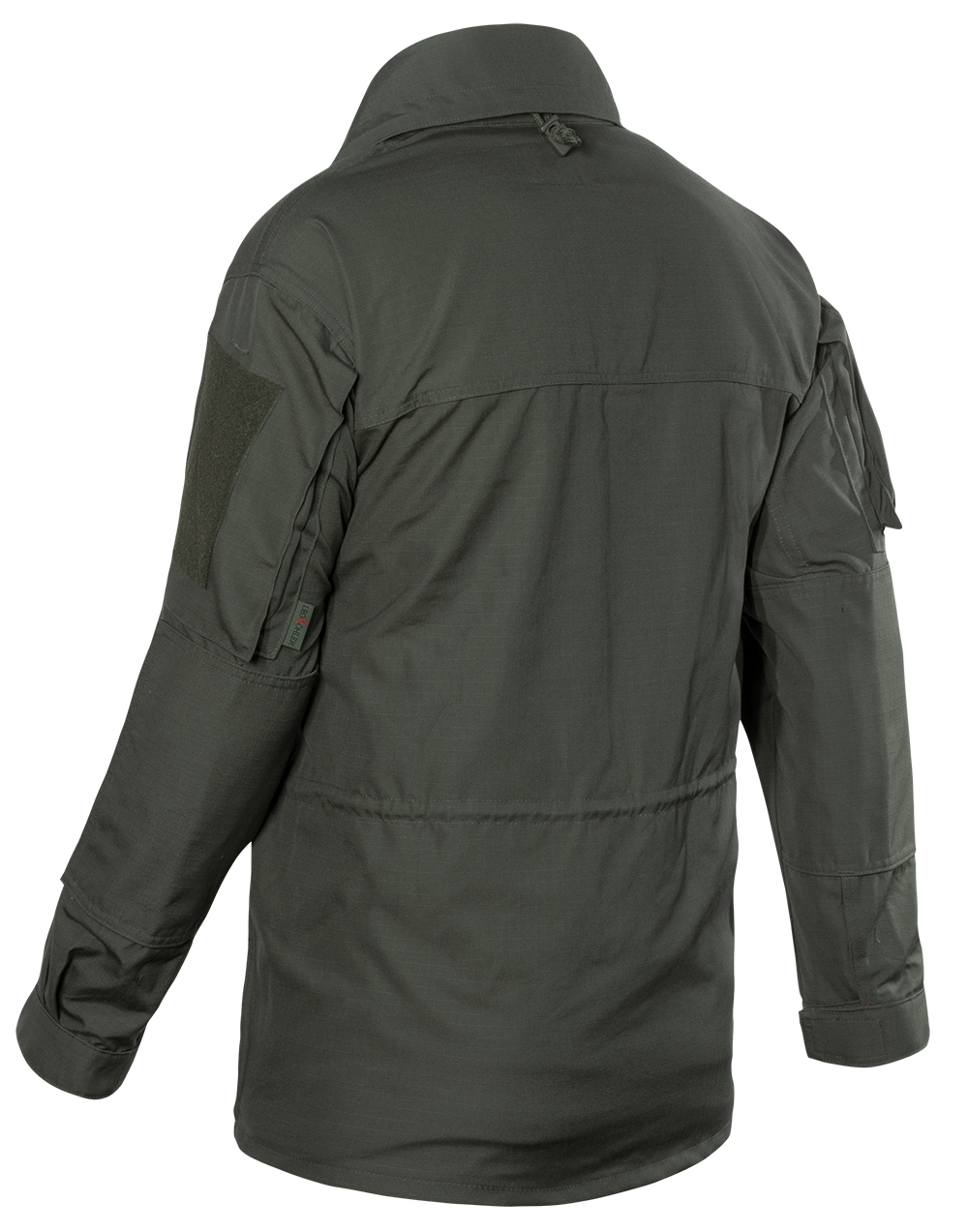 Velcro for name strip and ID patches on chest and upper arm pockets.