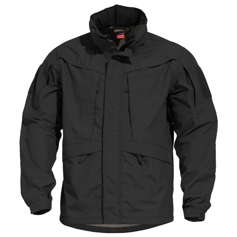 The Pentagon Tifon is a rugged wet weather jacket made of 3-ply laminated nylon material with fully taped seams.