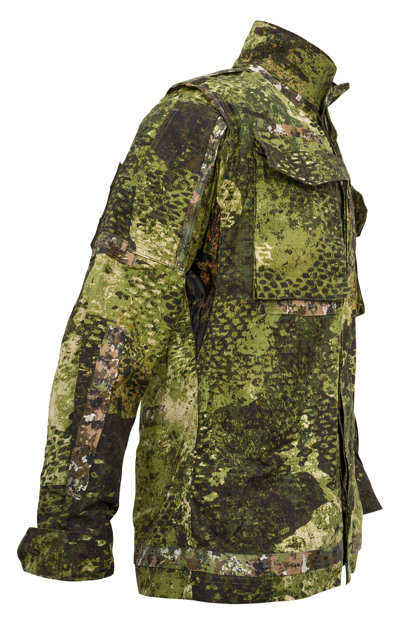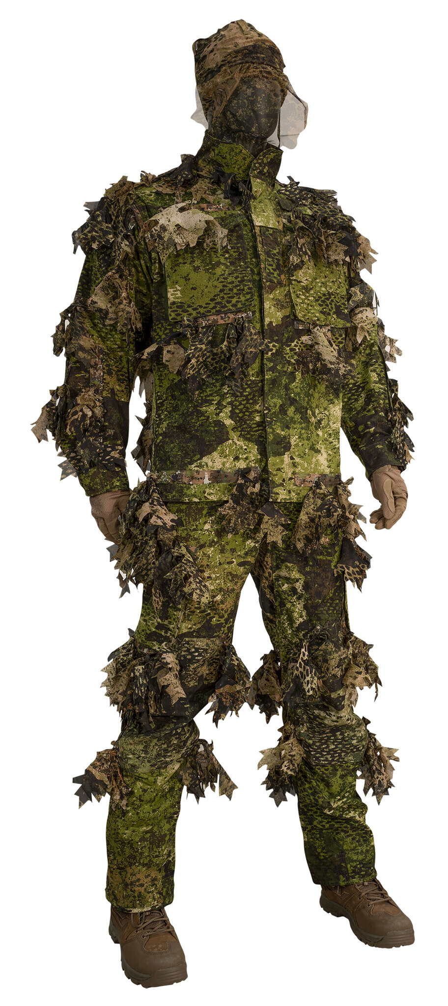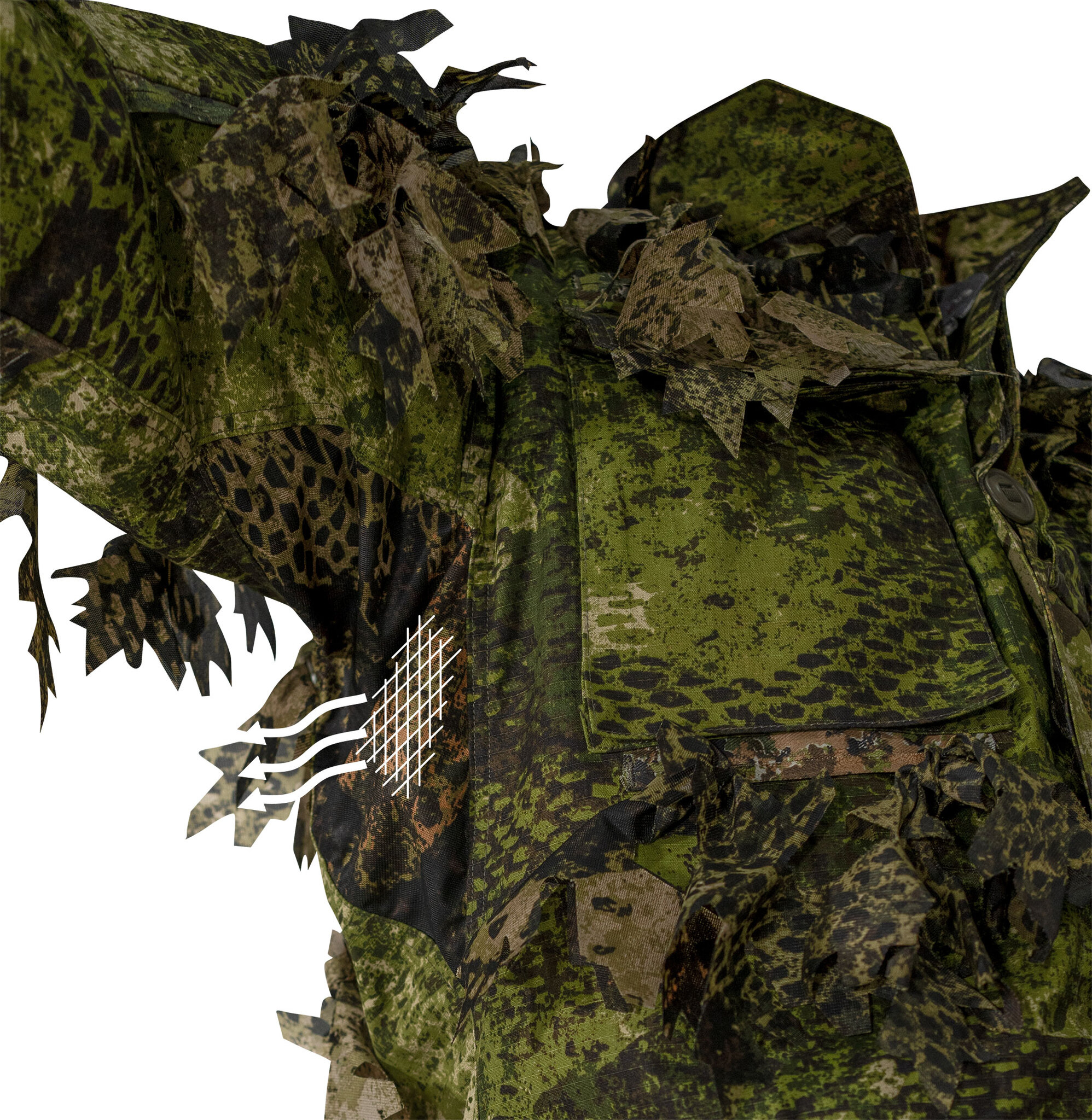 The Taipan clothing line is equipped with the double-sided printed slash tape, which allows for the individual inclusion of Phantomleaf Python Leaves or other camouflage material to ensure the best possible camouflage effect and breaking of the human silhouette.