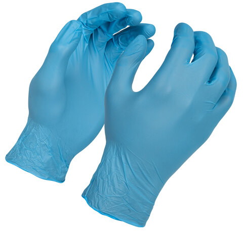 Rhino Rescue Gloves are blue, powder and latex free, medical examination and protective gloves made of soft polyvinyl chloride. The non-sterile disposable gloves are tear-resistant, stretchable, dense, microbe-resistant, left and right wearable.