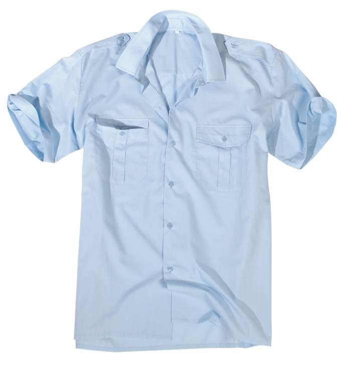 Service shirt with tunnel loop for epaulettes. It is very light, keeps its shape, absolutely easy to clean and dries quickly. Straight, comfortable cut, buttoned throughout, two patch flap pockets with button closure.