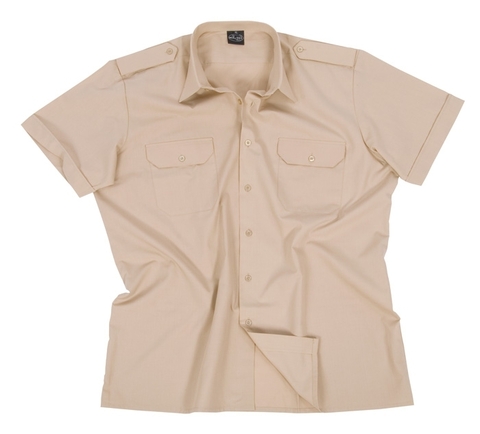 Service shirt with tunnel loop for epaulettes. It is very light, keeps its shape, absolutely easy to clean and dries quickly. Straight, comfortable cut, buttoned throughout, two patch flap pockets with button closure.