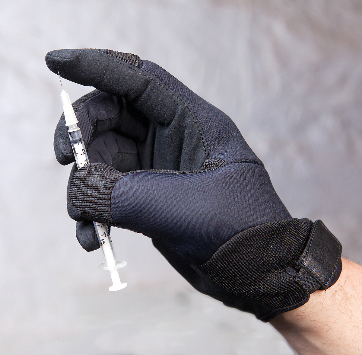 TurtleSkin police gloves protect against diseases such as AIDS and hepatitis C, which are transmitted via the blood, for example in the case of an accidental prick with a hypodermic needle. Testing requirements are not always comparable. These gloves have been specifically designed to provide increased protection against hypodermic needles. They comply with European Standard EN 388 and have been tested according to the guidelines of a modified ASTM 1342 standard test using a 0.813mm diameter hypodermic needle