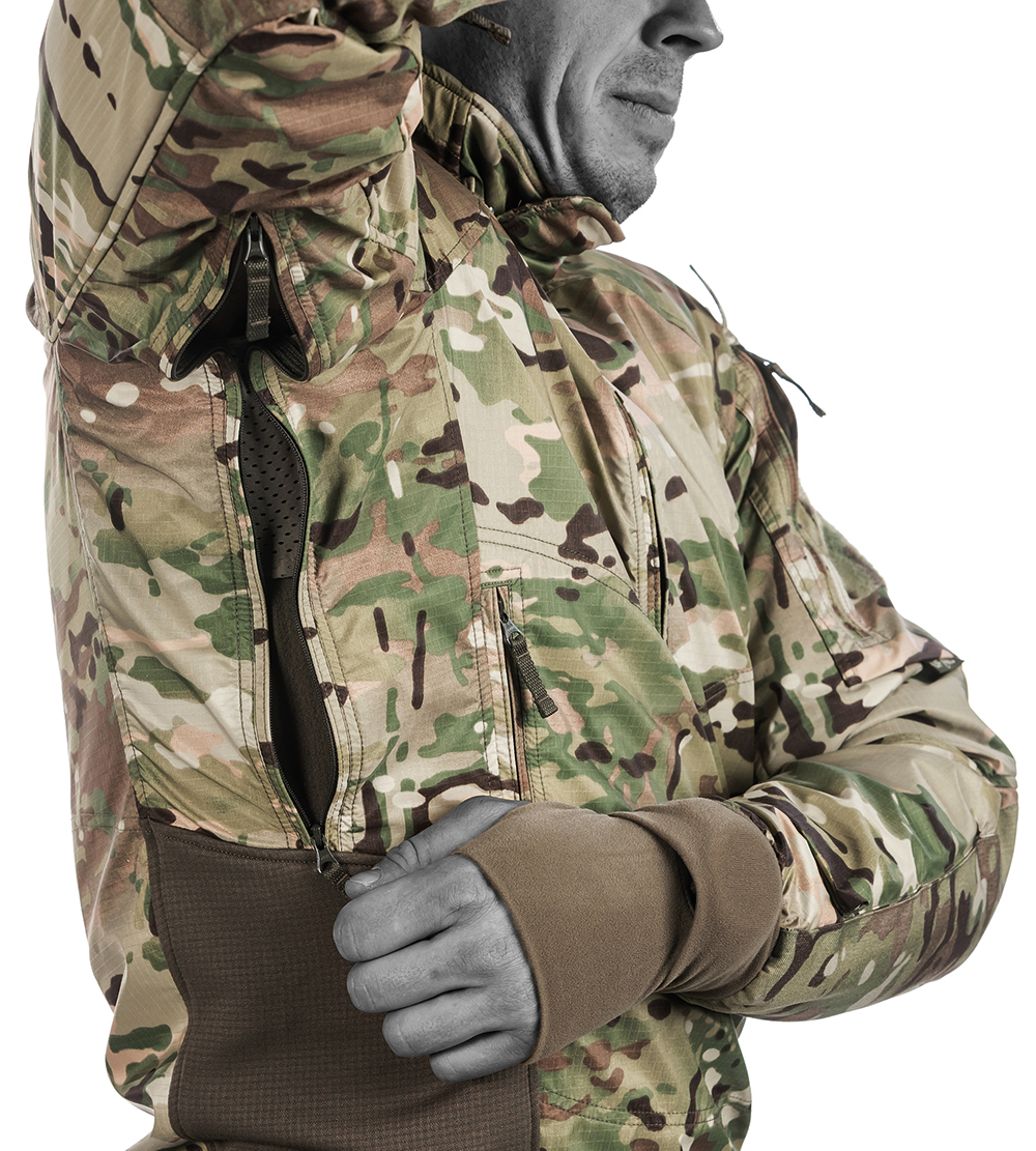 The UF PRO® AcE Winter Combat Shirt features a complex hybrid structure. This ensures optimal temperatures and at the same time protects against the elements. The arms are the most exposed parts of the torso - that's why the sleeves of the AcE Winter Combat Shirt are equipped with a high-performance G-Loft cold protection lining. Lightweight and breathable, G-Loft works even when it gets wet. Built-in air/pac® inserts for the shoulders and upper back provide extra comfort and protection. Closing the vents of the AcE Winter Combat Shirt allows the air/pac® inserts to trap air and provide additional insulation.