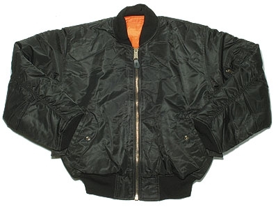 Pilot jacket made of wind- and water-repellent outer material with orange signal lining.