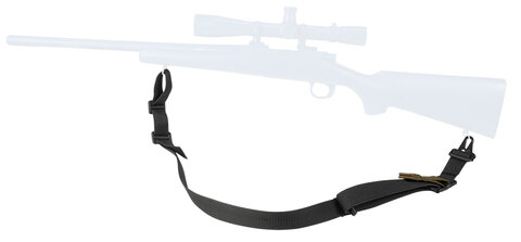 Length-adjustable sling to always choose the appropriate method of attachment, even under stress. The special feature of this sling is the adjustment strap, which allows the sling to be lengthened in a matter of seconds, in order to be able to go into the sling with the weapon.