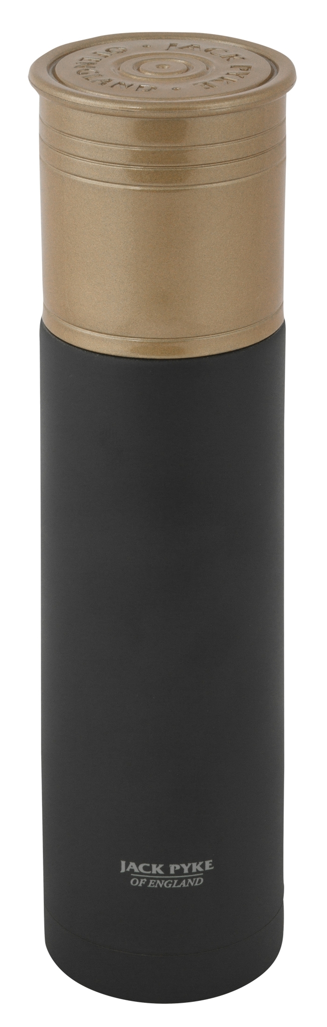 The Jack Pyke Thermos Cartridge is a double-walled insulated bottle, made of unbreakable and stainless steel, in the shape of a shotgun shell.
