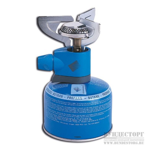 Компактная и надежная горелка. Соединение для вертикального картриджа. 3 держателя для кастрюли с встроенной защитой от ветра.