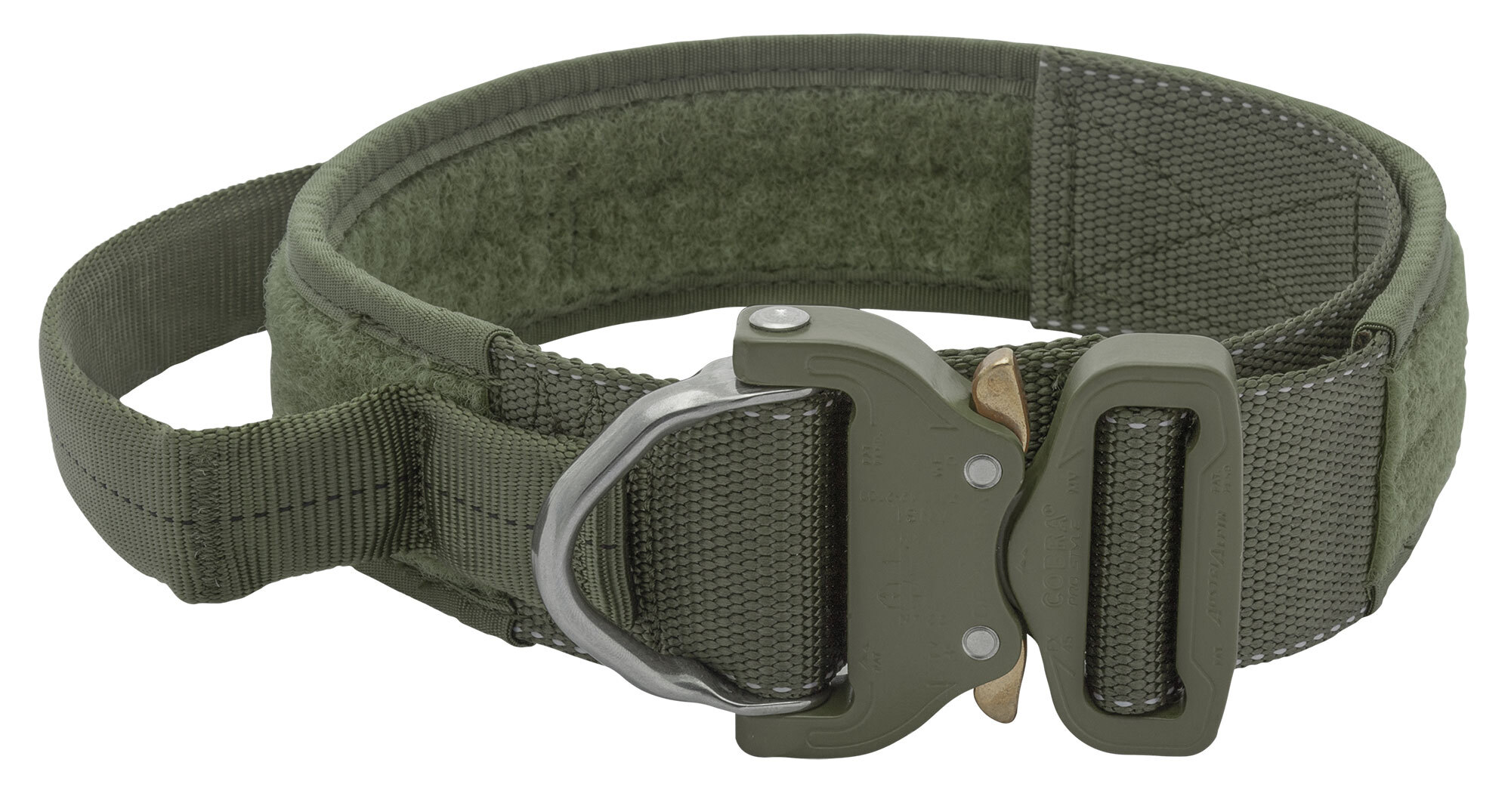 This working and deployment collar 45 mm from md-textil has a magnetic handle that completely attaches to the collar when not in use and safely prevents the dog from getting stuck. Thanks to the D-ring cobra from Austri Alpin in conjunction with the certified TYP7 webbing, failure of the collar is impossible. The webbing was laid in two layers, sewn on the outside, as well as inside with fleece velcro and then edged to ensure the maximum wearing comfort.