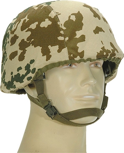 Helmet camouflage cover for Bundeswehr combat helmet in tropical camouflage.