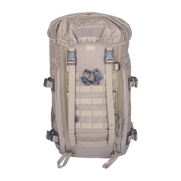 The Berghaus Backpack MMPS Centurio IV 30 FA IR stone gray olive is an extremely versatile and durable combat backpack. On the inside at the top of the back panel are two additional webbing loops that can be used to attach FLT accessories that are designed to be hung in a backpack. The zipper from the front access compartment has a so-called spiral zip. The ski attachment points on the side pocket and backpack body are made of flexible Hypolon fabric. The back panel with ventilation channel has an aluminum inner frame for extra support to comfortably carry heavy loads.