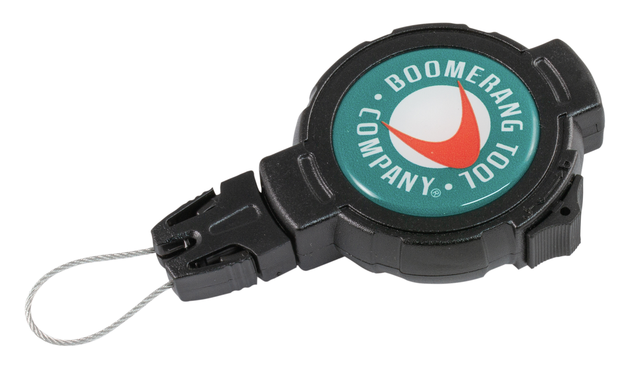 The premium line of retractable gear holders from Boomerang Tool Company® features a rugged polycarbonate housing, DuPont™ Kevlar® rope, stainless steel spring and convenient, easy-to-change end fittings