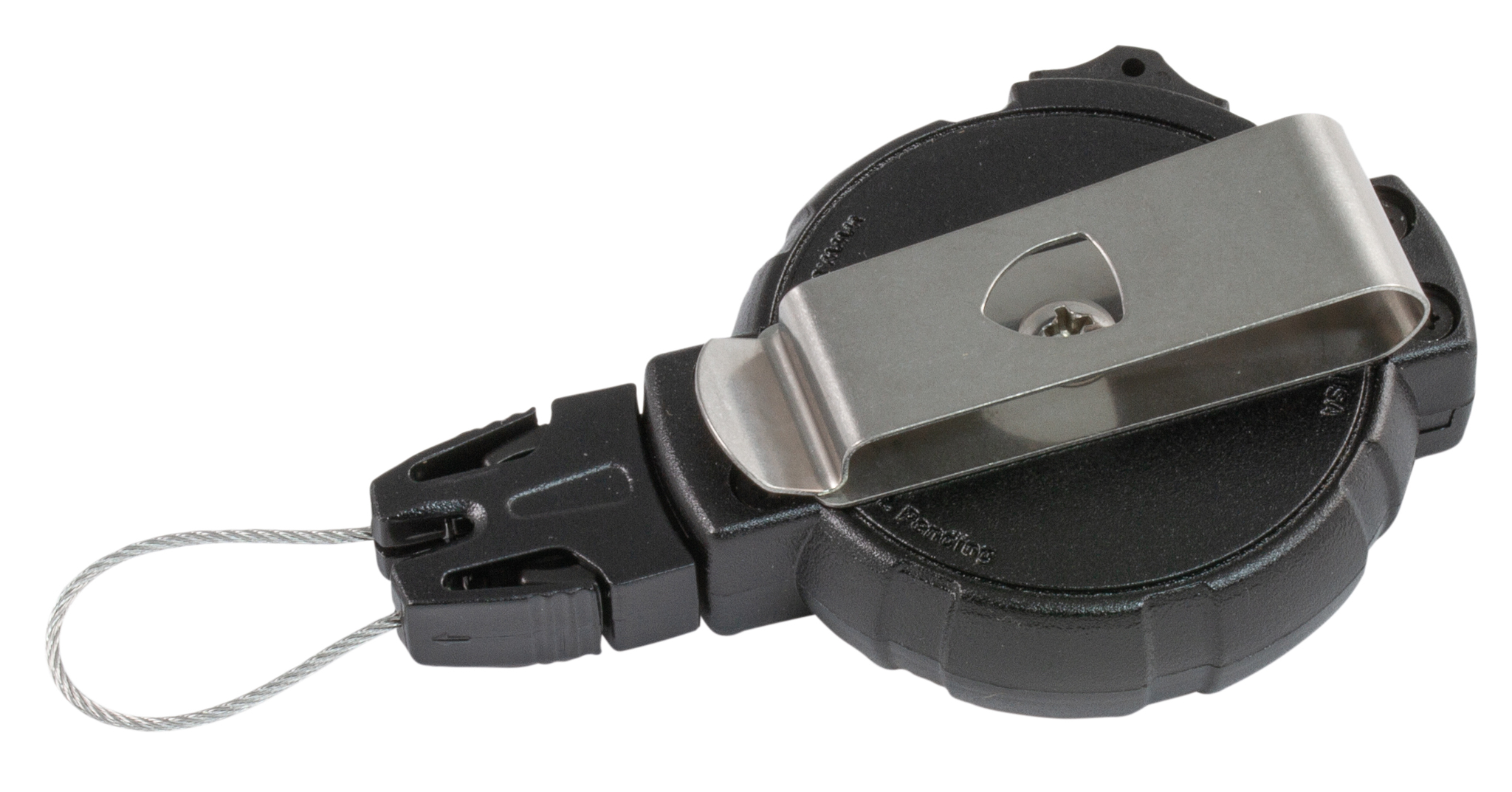 The equipment holder X-Duty has a 91 cm long safety rope with a tensile strength of up to 27 kg. The retractable belay system has a pull-back function and is suitable for equipment up to a maximum weight of approx. 396 g. However, depending on the weight of the equipment, the pull rope does not prevent it from falling to the ground when you let go, but the loss is avoided. The X-Duty equipment holder is suitable for large GPS devices and trekking poles, for example.