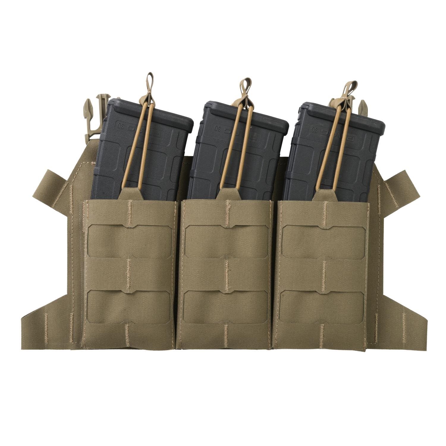 Advanced, skeletal flap for our plate carriers, especially BEARCAT® and SPITFIRE® series. The flap is designed to fit up to three M4/AR15 style magazines. Magazines are secured from the top via bungie cord. Due to the skeletal construction, the flap is not only minimalistic, but also is one of the lightest modular flaps on the market. The flap is covered with laser cut modular system compatible with MOLLE/PALS. The flap can be attached to the carriers via top buckles. The flap can also be easily transformed into a compact chest rig via additional chest rig interface (available separately).