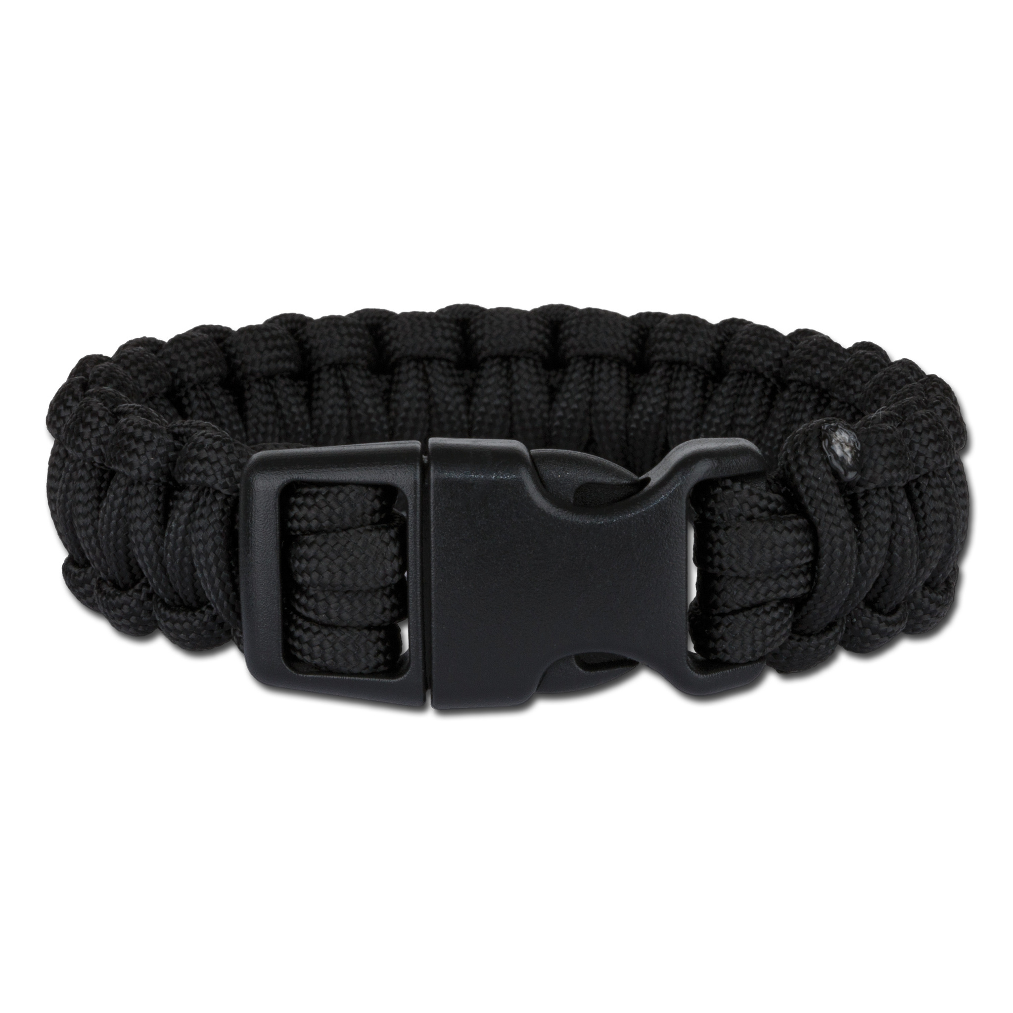 The Para-cord Survival Bracelet is a bracelet made from braided parachute cord. The Para-cord can be unwound in emergency situations providing a super strong rope for multiple uses.