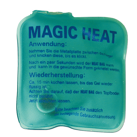 Термопродушка Magic Heat согреет Вас в любом месте. В результате процессов кристаллизации в гелевых подушках аккумулируется тепло, а с помощью нажатия на металлическую кнопку, расположенную в подушке, тепло медленно освобождается. Для повторного использования подушка с целью "зарядки" опускается в кипящую воду. Предварительно ее необходимо завернуть в платок или зафиксировать в щипцах, при этом очень важно, чтобы подушка не касалась дна кастрюли. По истечении прибл. 5 - 10 мин. содержимое подушки станет снова жидким и тем самым готовым к применению. При правильном использовании (подушки немного чувствительны к физическому воздействию) подушку можно использовать сотни раз. Отличный вариант для использования на открытом воздухе, во время занятий спортом.