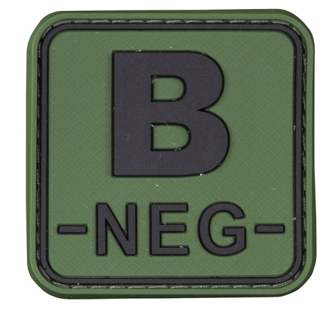 3D Blood Group Patch 50x50 Green/Black B neg -