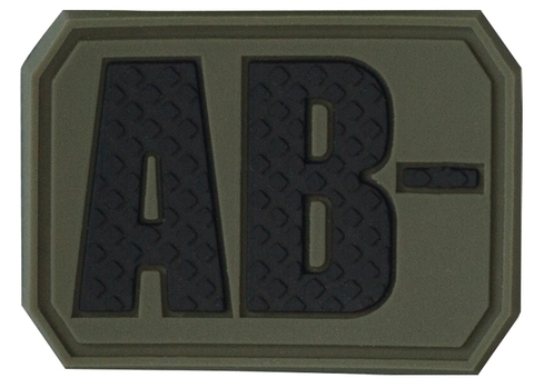 3D blood group patch made of rubber with sewn hook velcro on the back for sticking on soft fleece.