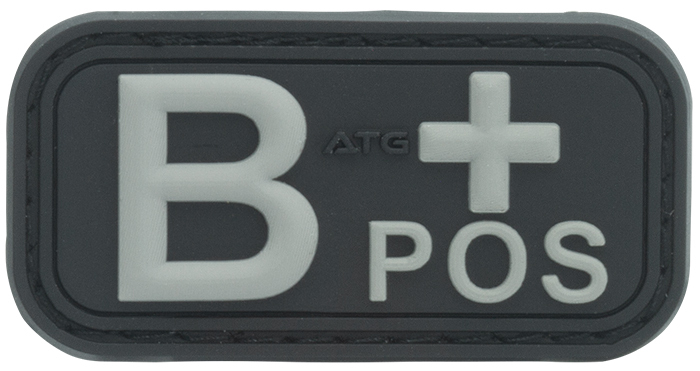 Flexible 3D blood group patch made of rubber with sewn hook velcro on the back for sticking on fleece velcro surfaces.