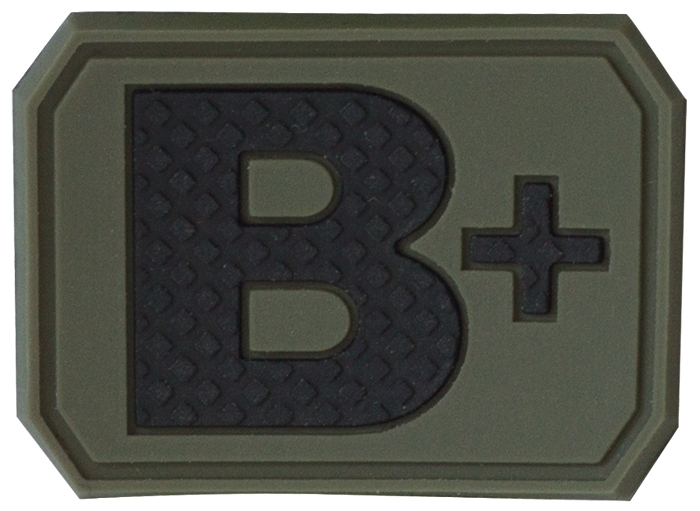 3D blood group patch made of rubber with sewn hook velcro on the back for sticking on soft fleece.