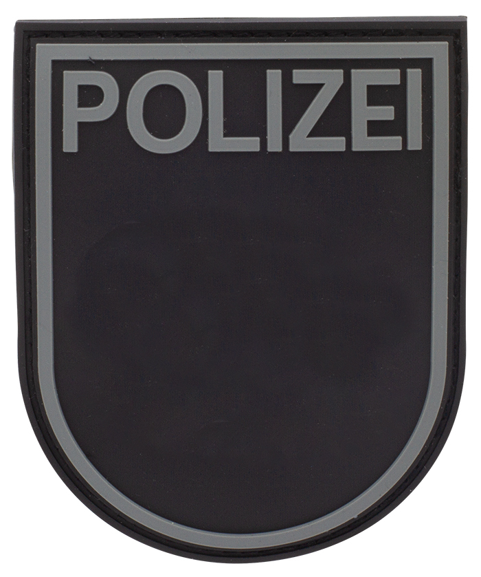 The specially manufactured high-quality and flexible Rubber Patch sleeve badge police with Velcro surface, convinces with a particularly detailed 3D look.