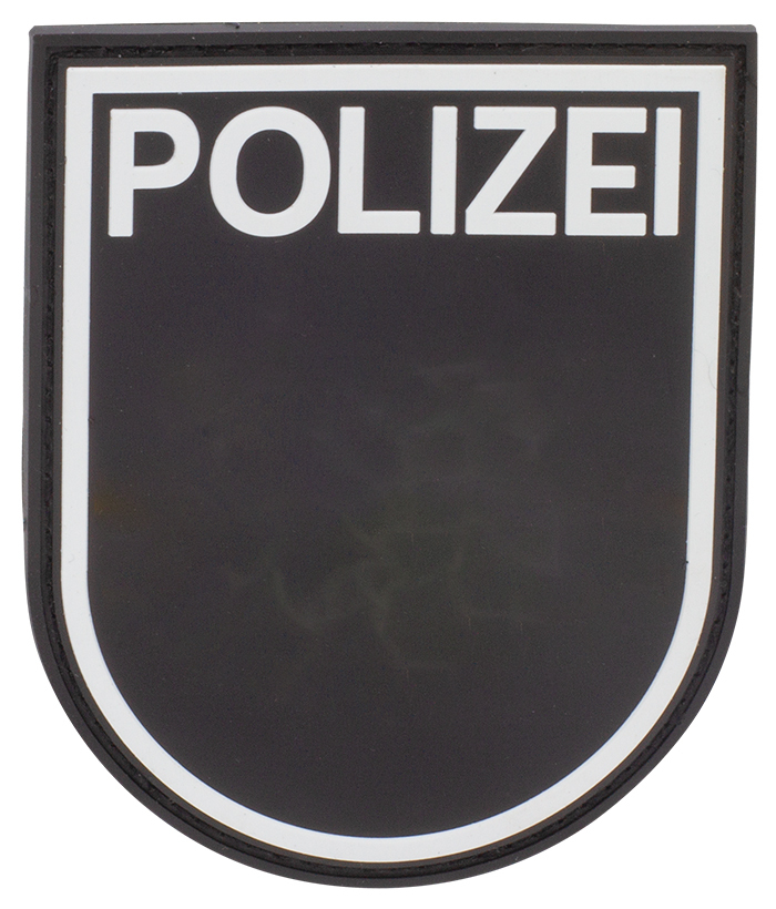 The specially manufactured high-quality and flexible Rubber Patch sleeve badge police with Velcro surface, convinces with a particularly detailed 3D look.
