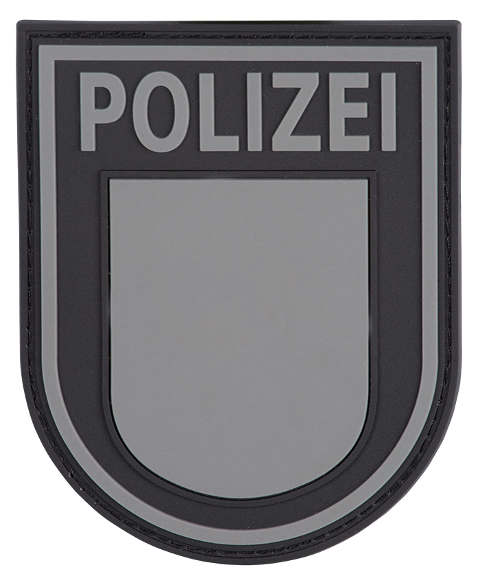 The specially manufactured high-quality and flexible Rubber Patch sleeve badge police with Velcro surface, convinces with a particularly detailed 3D look.