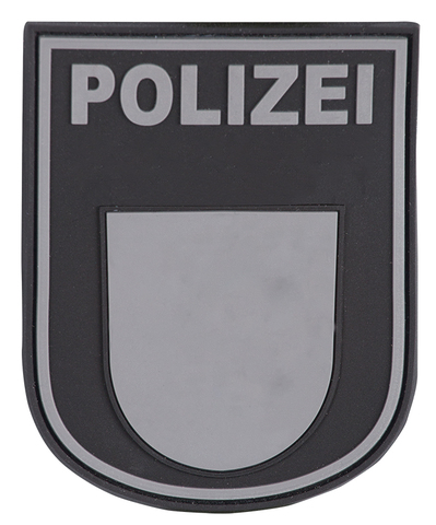 The specially manufactured high-quality and flexible Rubber Patch sleeve badge police with Velcro surface, convinces with a particularly detailed 3D look.