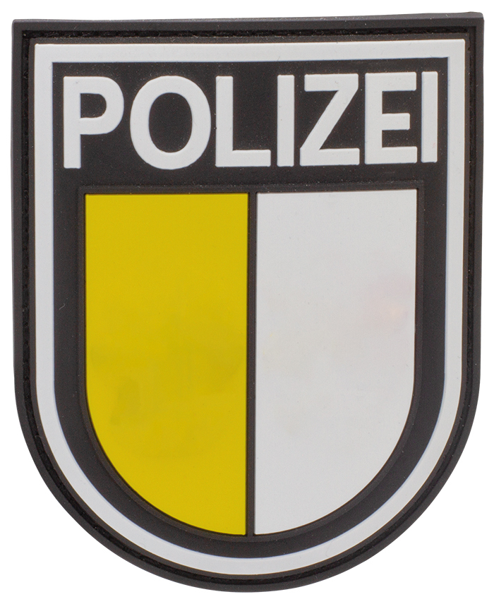 The specially manufactured high-quality and flexible Rubber Patch sleeve badge police with Velcro surface, convinces with a particularly detailed 3D look.