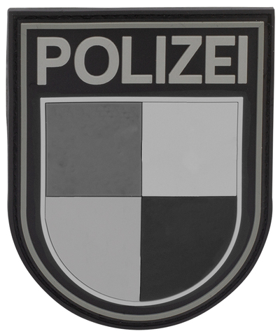 The specially manufactured high-quality and flexible Rubber Patch sleeve badge police with Velcro surface, convinces with a particularly detailed 3D look.