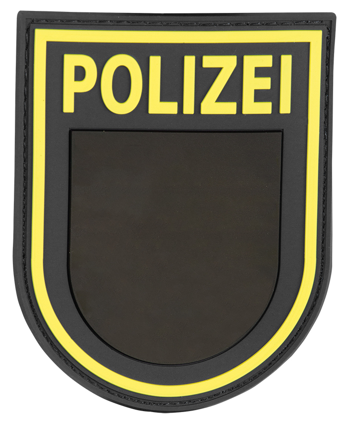 The specially manufactured high-quality and flexible Rubber Patch sleeve badge police with Velcro surface, convinces with a particularly detailed 3D look.