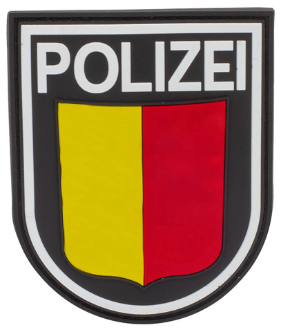 The specially manufactured high-quality and flexible Rubber Patch sleeve badge police with Velcro surface, convinces with a particularly detailed 3D look.
