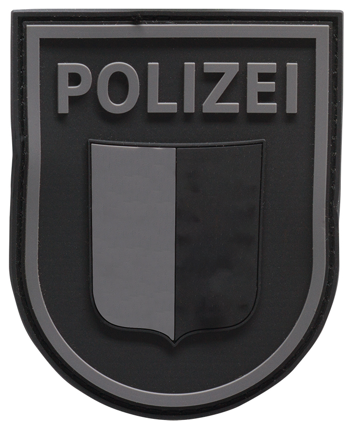 The specially manufactured high-quality and flexible Rubber Patch sleeve badge police with Velcro surface, convinces with a particularly detailed 3D look.