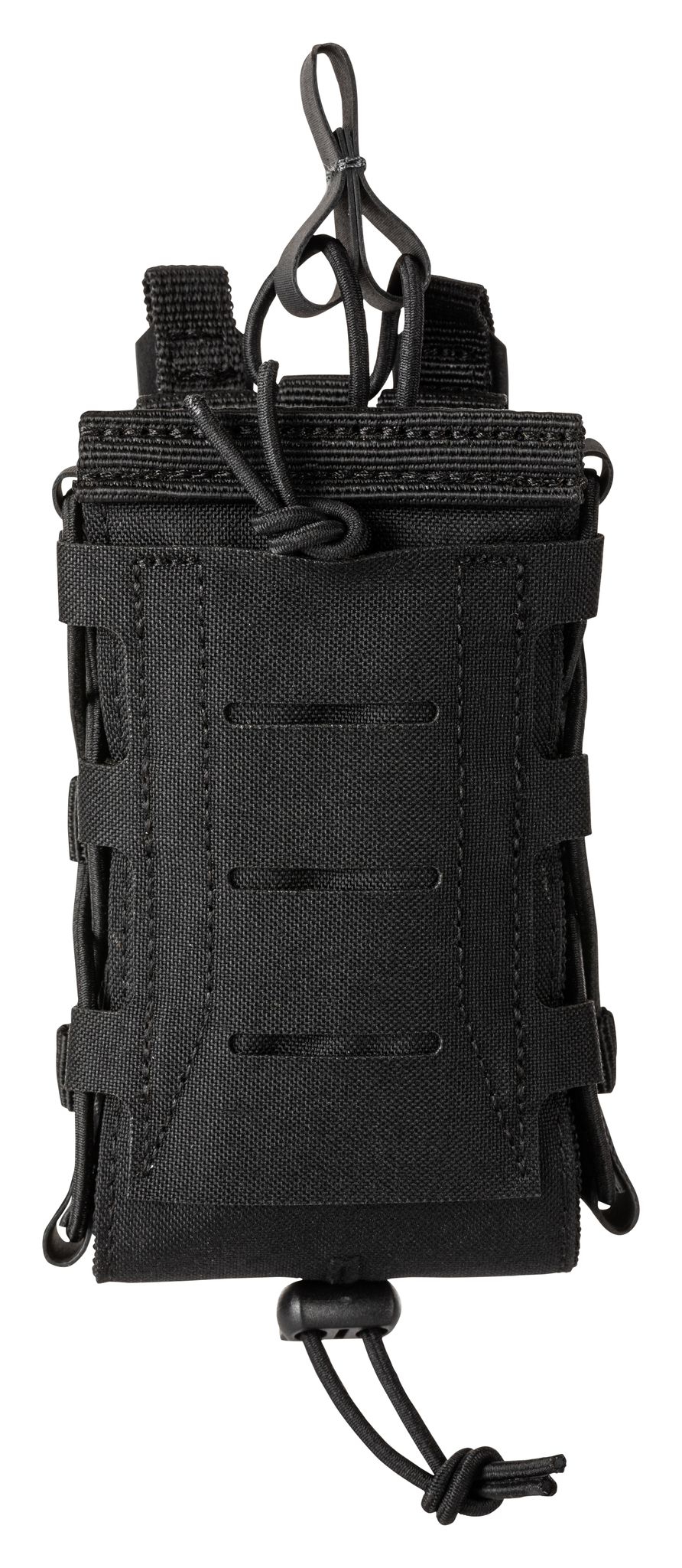 The Flex Single Multi Caliber Mag Bungee Pouch from 5. 11 Tactical has adjustable side panels and an elastic drawstring with cord stopper for different magazine sizes. Choose your weapon without worrying about carrying magazines.