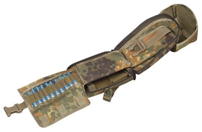 On the inside of the cartridge pouch is a loop for stowing already ammunition magazines of various sniper rifles and the G22 of the Bw, attached. In this way, the G22 ammunition bag can be used to professionally store and transport individual and ammunitioned cartridges.