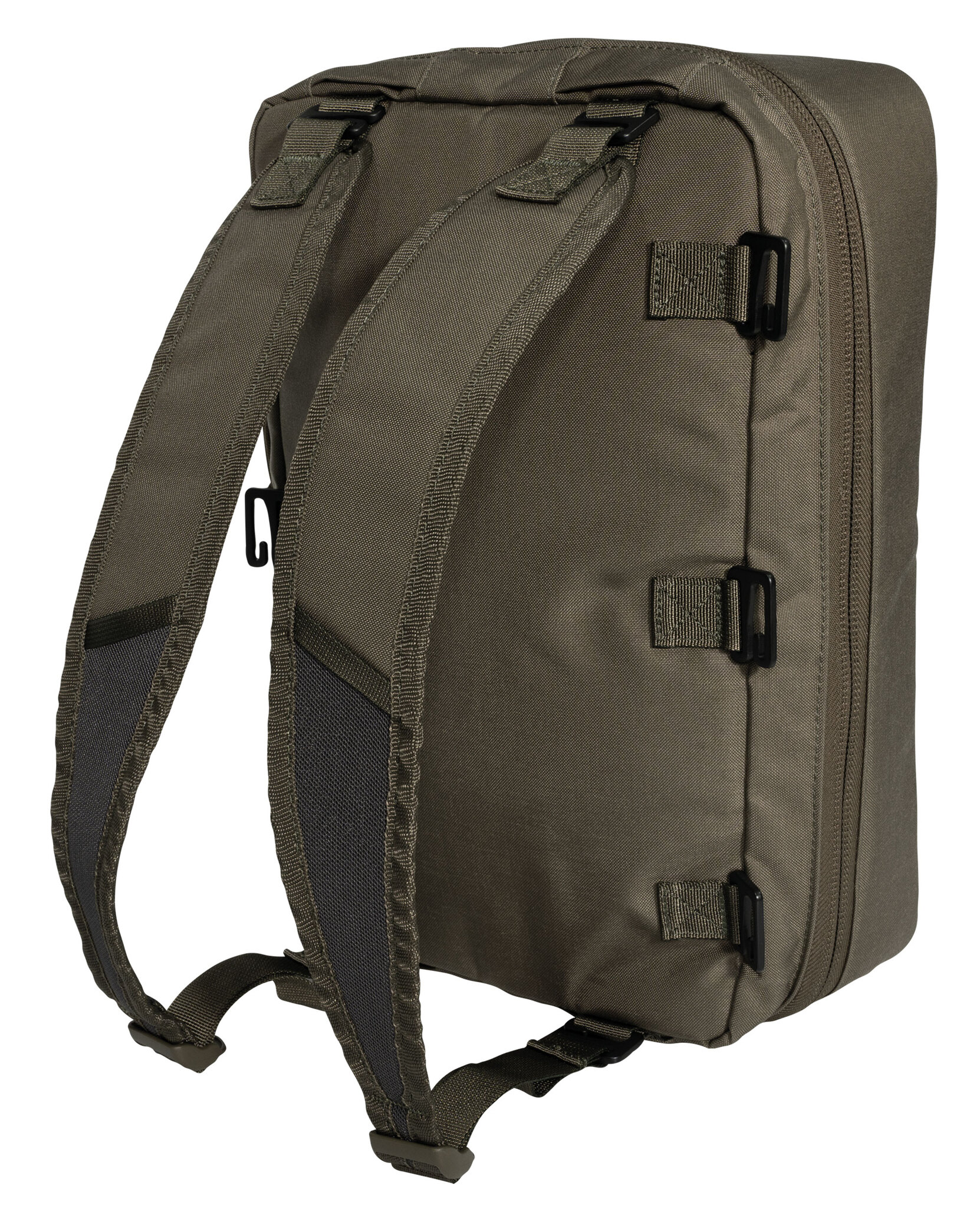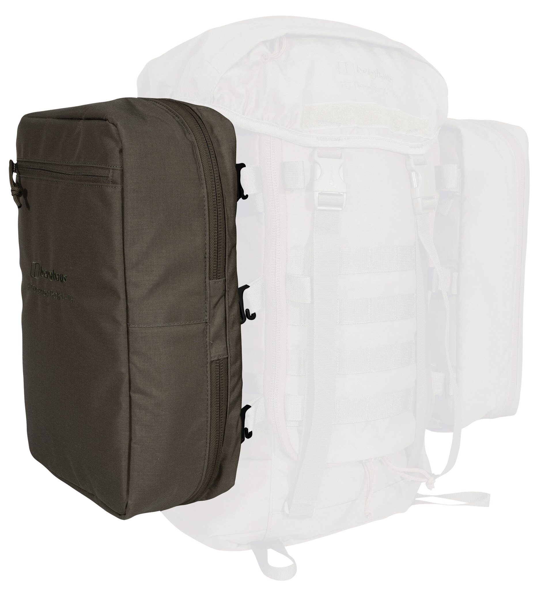 A DIN A3 sized document sleeve, a pad and pen case with 3 separate zippered compartments, a panel with rubber loops and slide-in pockets as well as the large MOLLE area and the inner wall with Velcro area and three mesh pouches characterize the diversity of this organizer pocket. Like all FLT bags, it can be combined with all Berghaus FLT series backpacks and bags.