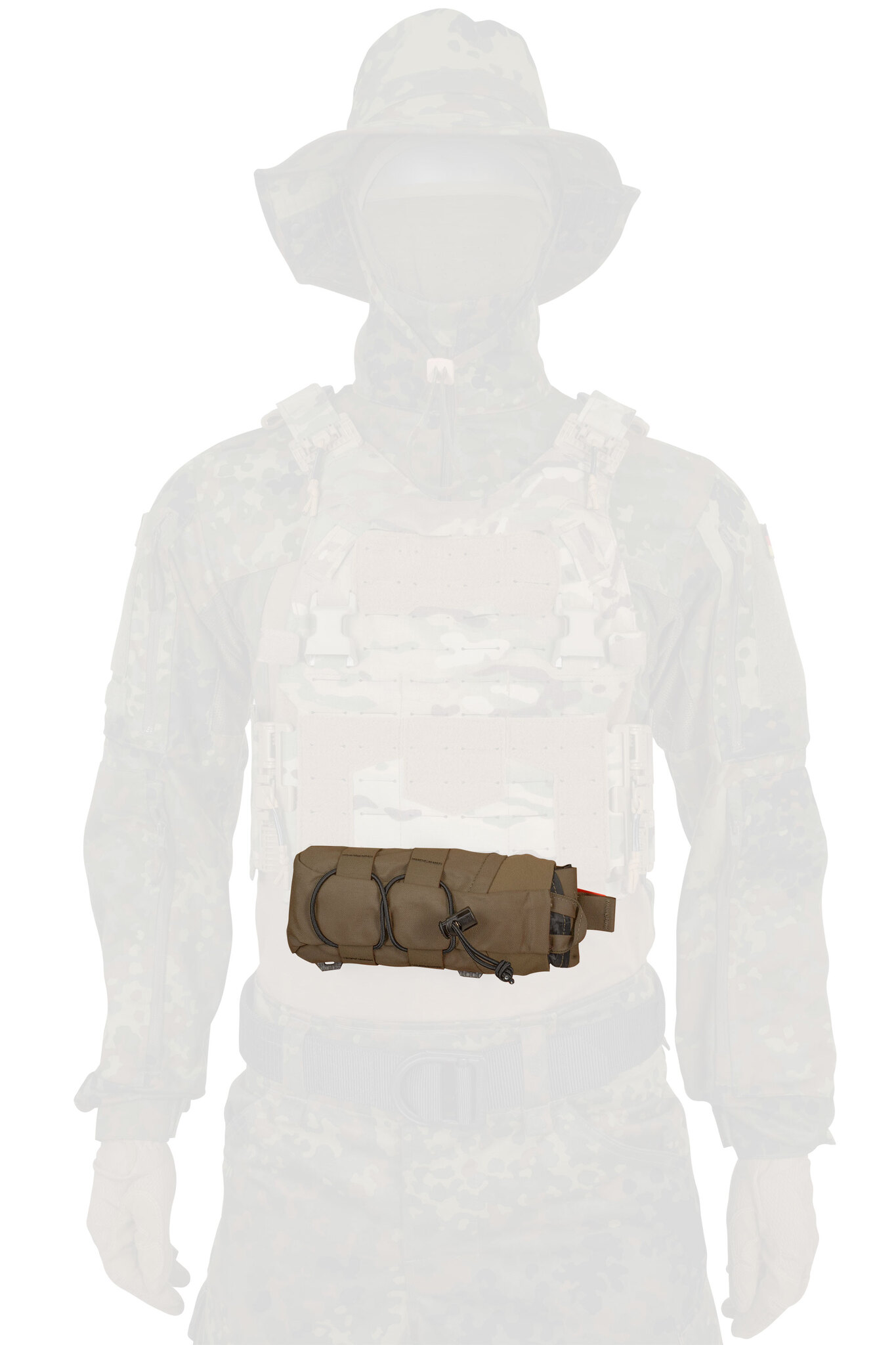 The Blackfolium RIFAK (Rip-Away IFAK) is a convenient Medic Kit to carry all essential items when people need initial care according to the MARCH protocol. Thanks to its innovative design, the user can reach the medical items in less than 6 seconds. With its thoughtful design, the inner portion of the bag is constructed to keep the medical items inside even when pulled out quickly. The RIFAK is kept inconspicuous in its appearance so that it can be used during covert operations. Via elastic on the front, one can compress the RIFAK to ensure a secure fit of the items inside. In addition, one can also use the elastic to attach a tournique or similar. The PALS/MOLLE straps attached to the side can be used to attach additional pockets or more tools such as scissors/voucher cutters, etc.