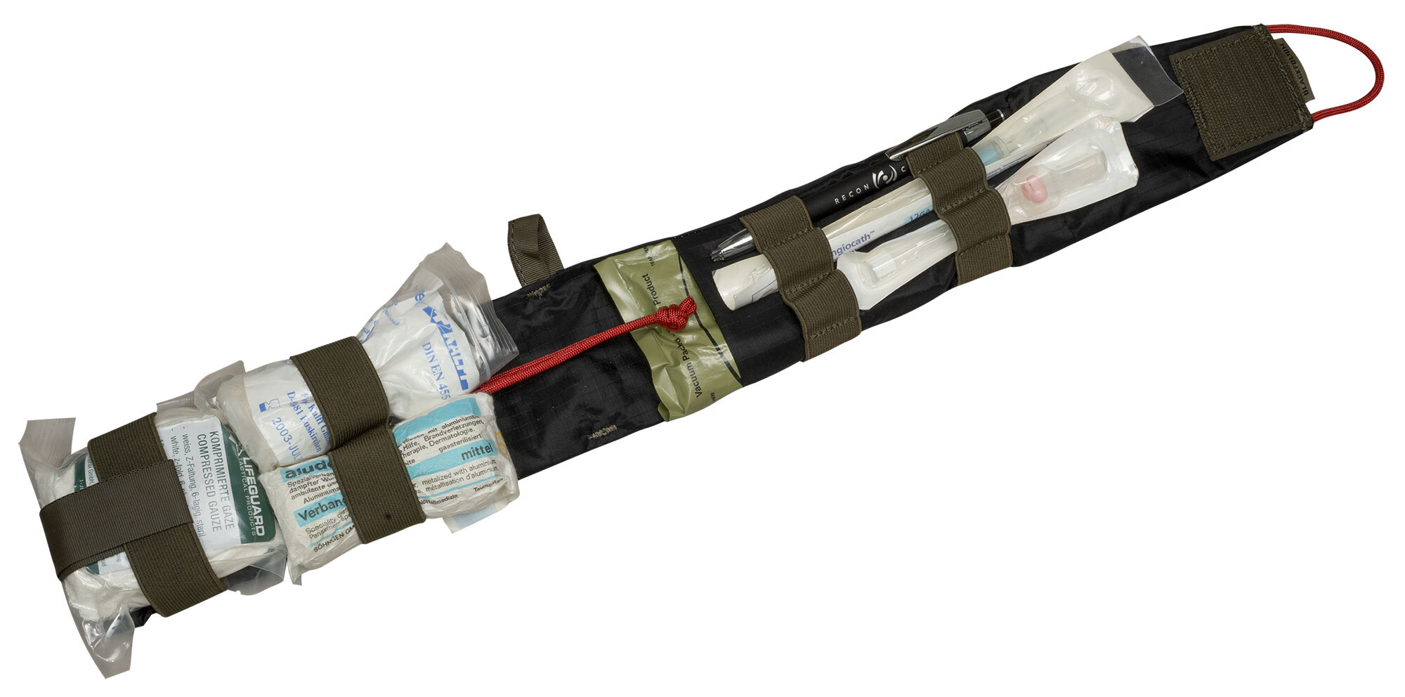 The Blackfolium RIFAK (Rip-Away IFAK) is a convenient Medic Kit to carry all essential items when individuals need initial care under MARCH protocol.