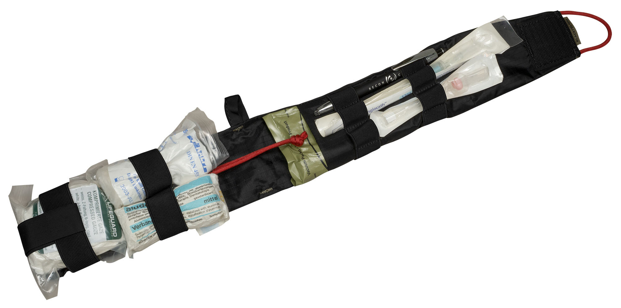 The Blackfolium RIFAK (Rip-Away IFAK) is a convenient Medic Kit to carry all essential items when individuals need initial care under MARCH protocol.