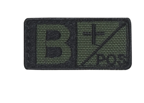 Embroidered blood group identification with sewn-on hook tape for sticking, counter Velcro is supplied.