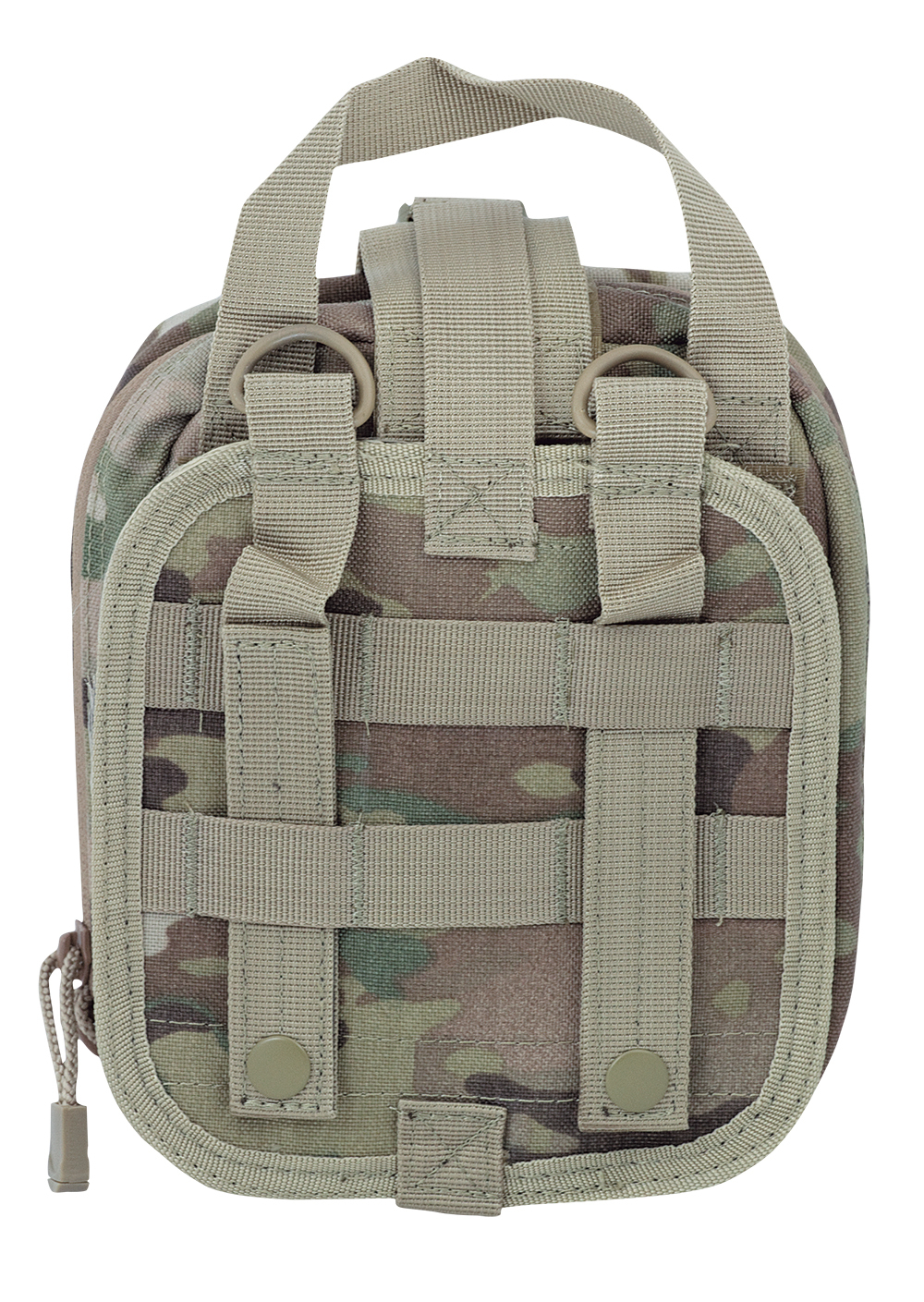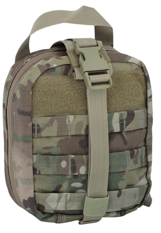 The Rip-Away EMT (Emergency Medical Technician) Pouch from Codor is a practical first aid pouch with a quick deployment design and quick release buckle. The pouch is attached to a MOLLE platform with Velcro and fleece and is secured with a webbing strap with Fastex buckle. In emergency situations, the pouch can be quickly pulled off the plate. Zipper opening, internal compartments, elastic bands and mesh pockets. There are 2 D-rings on the back of the Molle plate for attaching a carrying strap (not included).