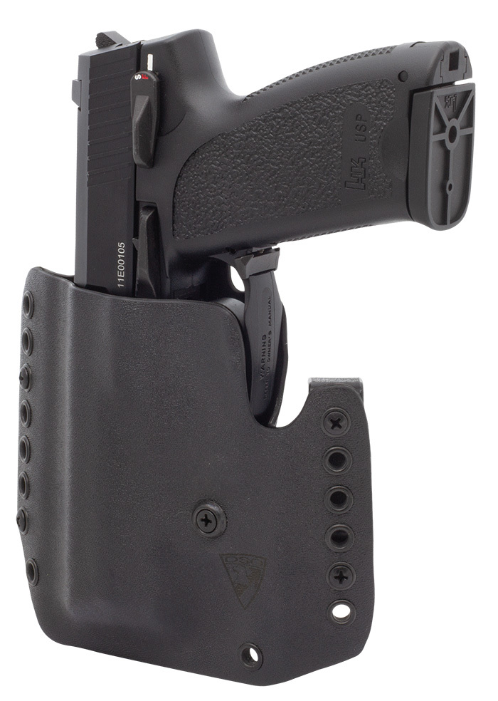 The DSG Arms Alpha Holster is a full-size Kydex OWB external shoulder holster for daily duty and training use