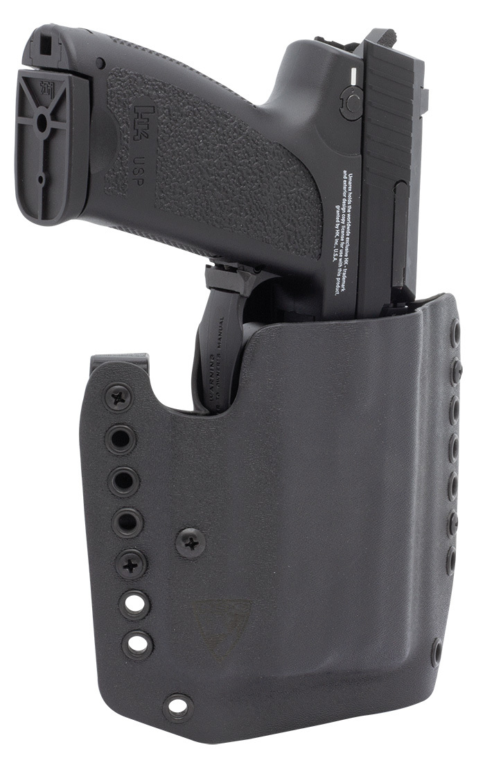 The DSG Arms Alpha Holster is a full-size Kydex OWB external shoulder holster for daily duty and training use