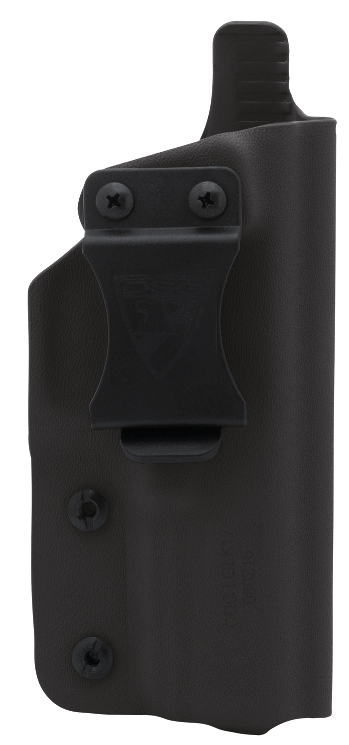The DSG Arms CDC Holster (Compact Discreet Carry) is a minimalist Kydex inner waistband holster for concealed carry. The rubber-mounted belt clip can be converted for vertical and horizontal carry. The CDC holster easily slides onto standard size 38mm to 44mm wide belts. It's made of virtually indestructible .93 Kydex 100 rather than the industry-standard .080, which means it's a bit thicker but even more scratch-resistant than most other Kydex holsters.