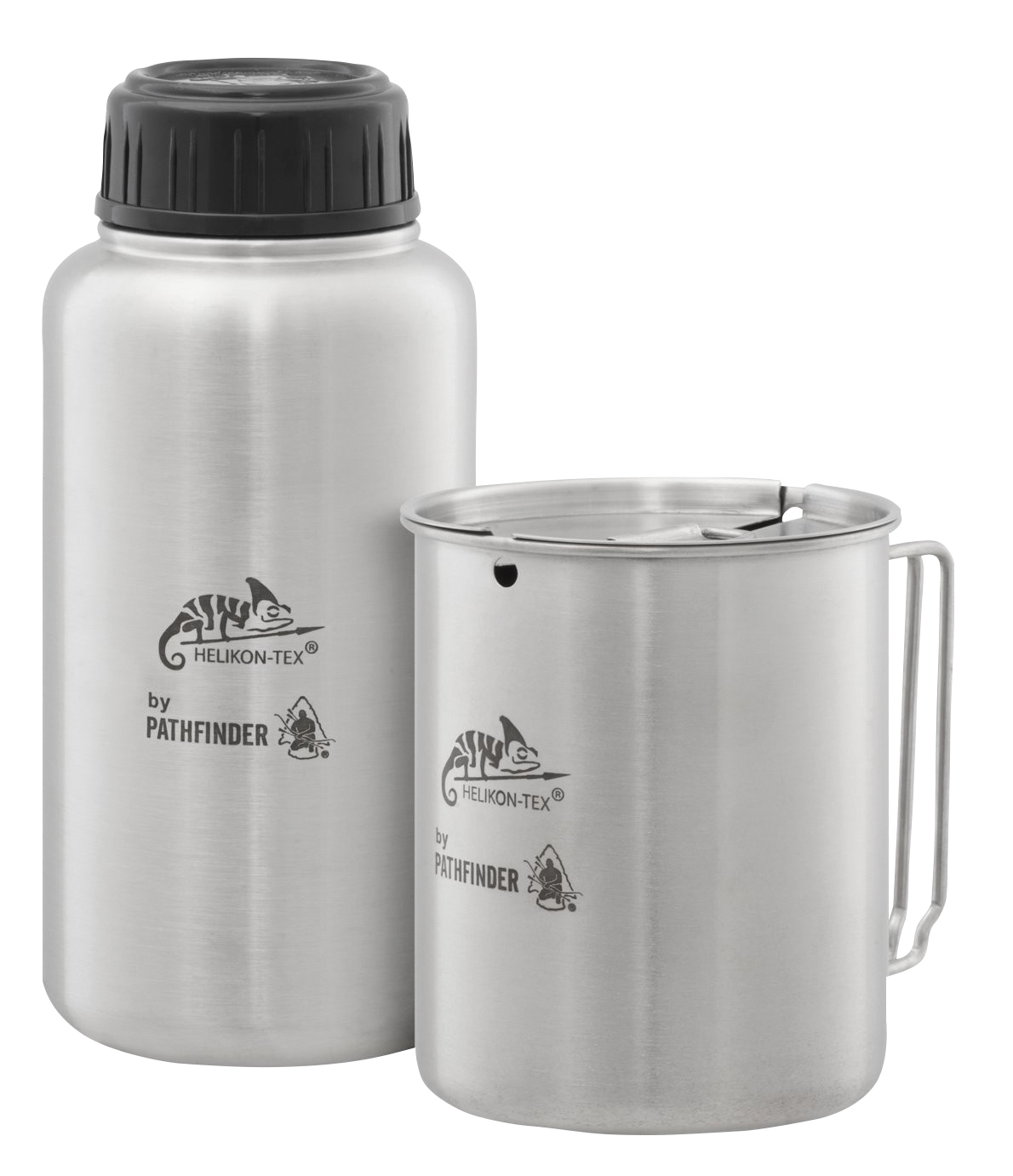 The Pathfinder 32oz Water Bottle with Nesting Cup Set from Helikon consists of a stainless steel water bottle and cup with lid